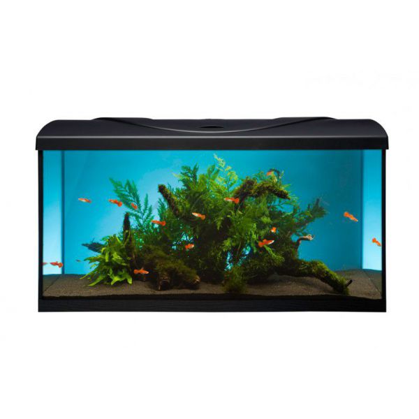 Set akvarija s ravnim prednjim staklom, širinom 80 cm i zapreminom 112 l dolazi s rasvjetom, filtrom, grijačem, mrežicom i uzorcima hrane. Više detalja