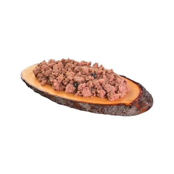 Sastav: 85 % mesa i organa (59 % purica, 26 % nojevo meso), 9 % temeljac, 4 % kupine, 1 % minerali, 1 % laneno ulje