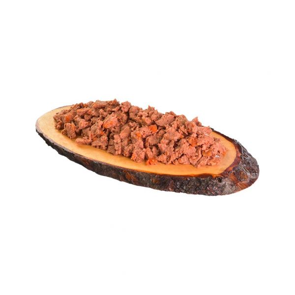 Sastav: 85 % mesa i organa (59 % purica, 26 % prepelica), 9 % temeljac, 4 % žuta mrkva, 1 % minerali, 1% laneno ulje