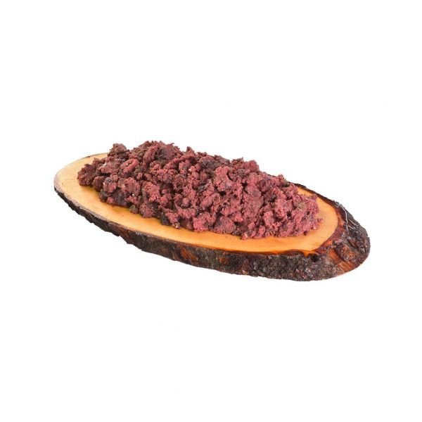 Sastav: 85 % mesa i organa (59 % purica, 26 % bivol), 9 % temeljac, 4 % latice ruža, 1 % minerali, 1% laneno ulje